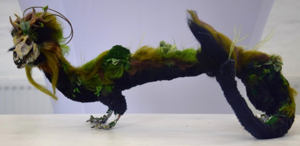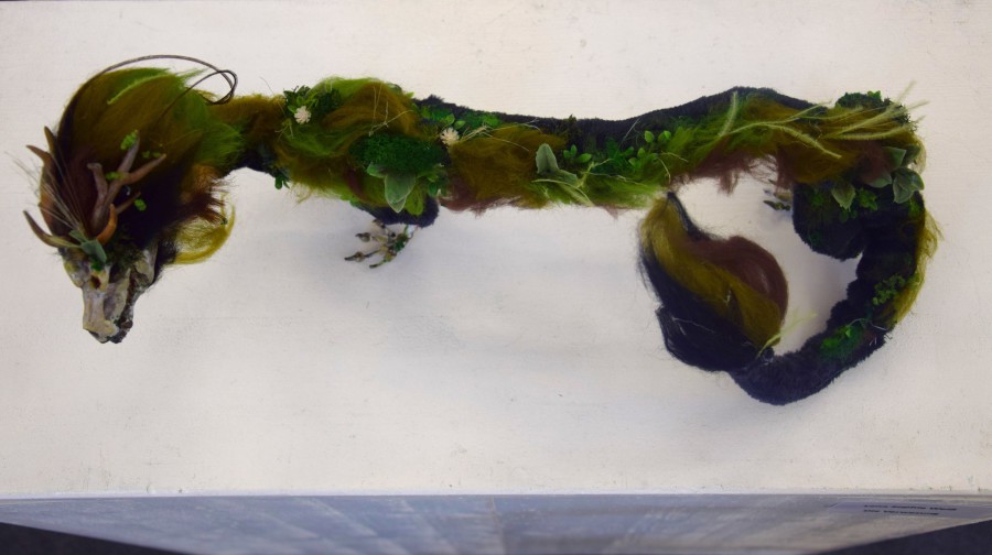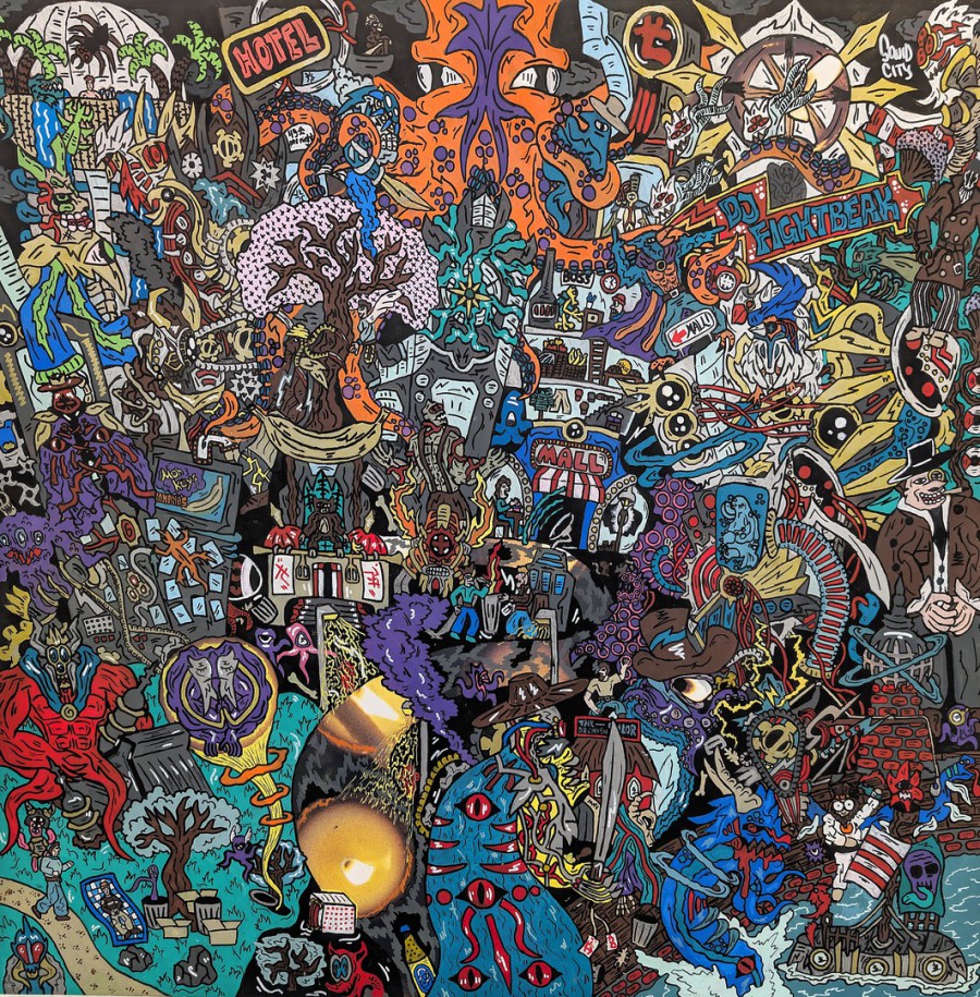Zwischen Illusion und Auflösung entfaltet sich schließlich in mehreren Werken eine bizarre Welt, puzzleförmig mit mannigfaltigen Versatzstücken aufgebaut, die sich dem Medium des Comics verschrieben haben. Die Vielfalt der Formen, Gestalten und Existenzen dieser Welt, die keineswegs vom Menschen dominiert wird, überrascht. Dargestellt wird keine heitere, eher eine düstere Welt, so dass sich die Frage nach der Zukunft ins Bewusstsein drängt.