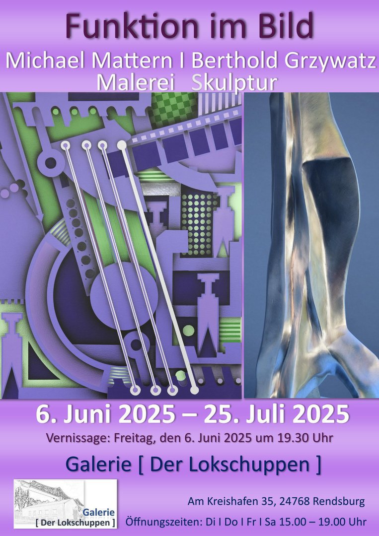 Michael Mattern ist gebürtiger Husumer, heute lebt und arbeitet er in Itzehoe. Seine familiären Verhältnisse zwangen ihn, zu Beginn der siebziger Jahre ein Studium an der Hochschule für bildende Künste in Berlin aufzugeben und durch eine handwerkliche Tätigkeit die Subsistenz seiner Familie zu sichern. Die Arbeit als Retuscheur hinderte Mattern nicht, sich der freien Kunst anzunähern und auf originelle Weise die Technik zu seinem Sujet zu machen. Nicht in tradierter Form durch eine Darstellung der industriellen Arbeitswelt, sondern durch den Zugriff auf die konstruktiven Strukturen technischer Objekte. Vom äußeren Design zu den inneren Zusammenhängen entfaltet sich der malerische Duktus. Das beinhaltet eine Konfrontation mit der Idee, die sich in der Konstruktion niederschlägt, um schließlich in einer Anleitung dienstbar zu werden: für die Fertigung, für den Betrieb, für die Reparatur oder für das Verstehen des Nutzers.