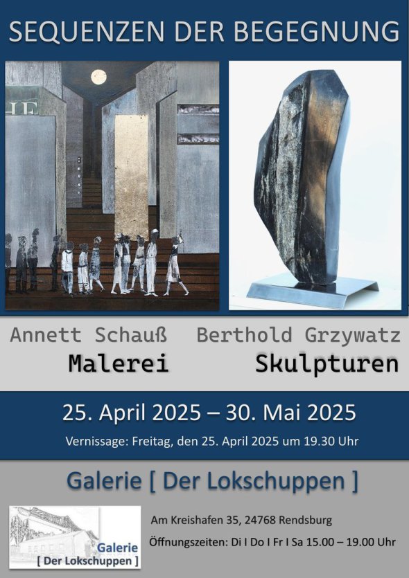 The 2025 annual programme at Galerie [ Der Lokschuppen ] begins with a multifaceted exhibition featuring paintings by Hanoverian painter Birgit Soine in collaboration with wood sculptures by Berthold Grzywatz.