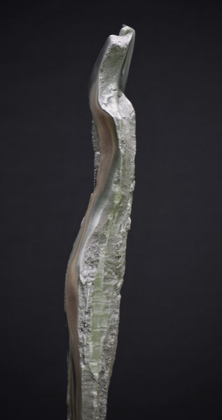 Metallguss (Aluminium), grob gestrahlt (Edelstahl) und teilpoliert. Basis: Aluminium, poliert.